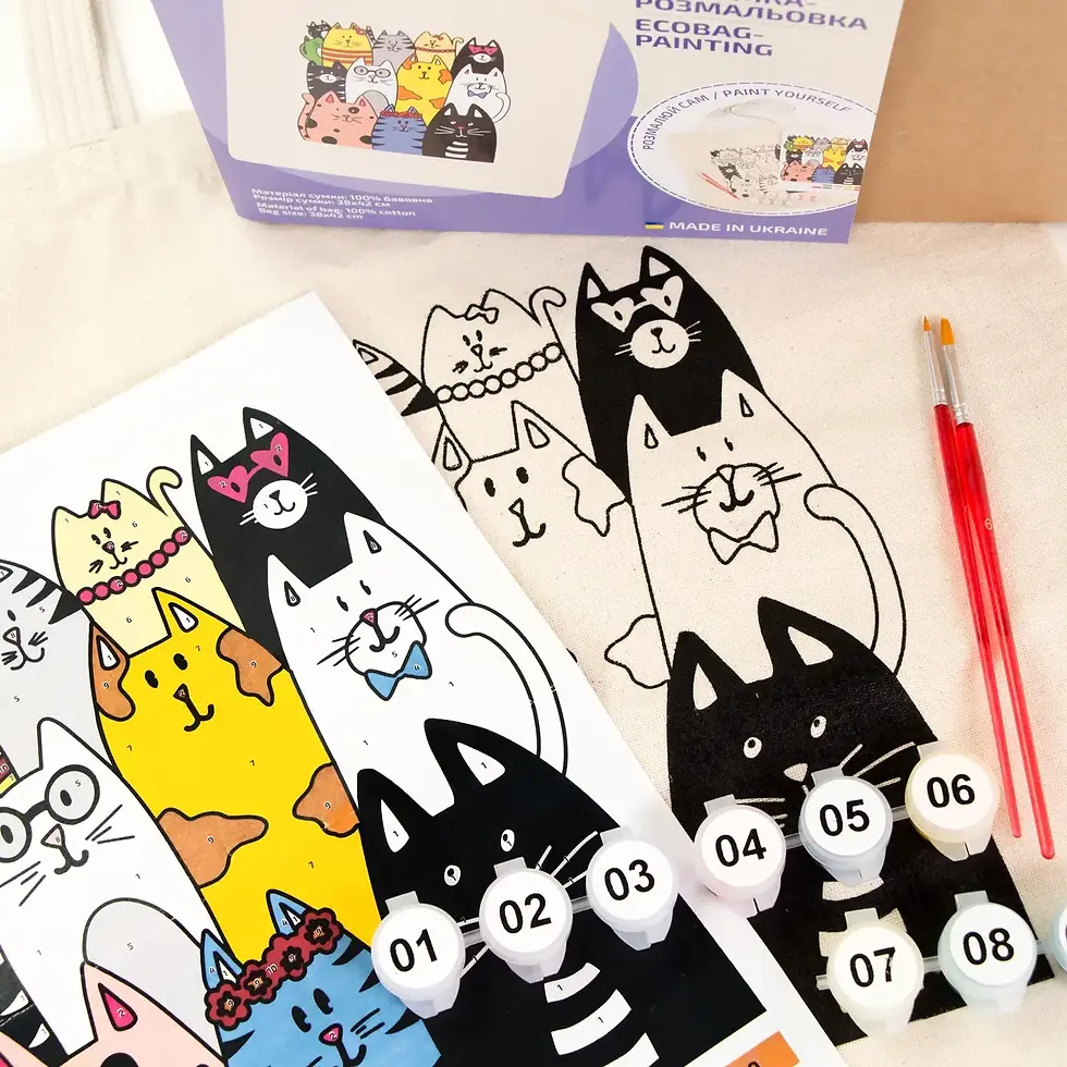Rosatalent: paint by number Eco-Bag Coloring Kit - Cats
